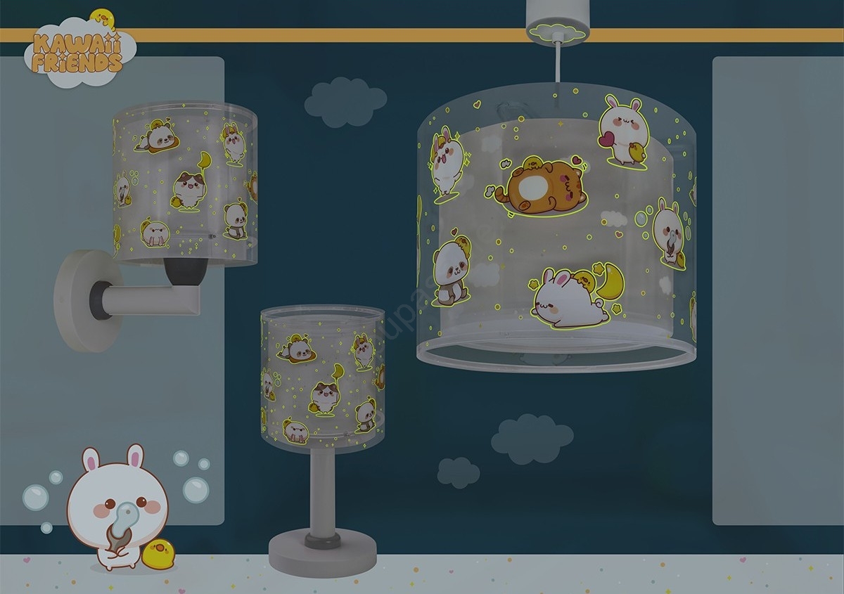 • Dalber 41762E - Bērnu lustra KAWAII FRIENDS 1xE27/15W/230V pelēka