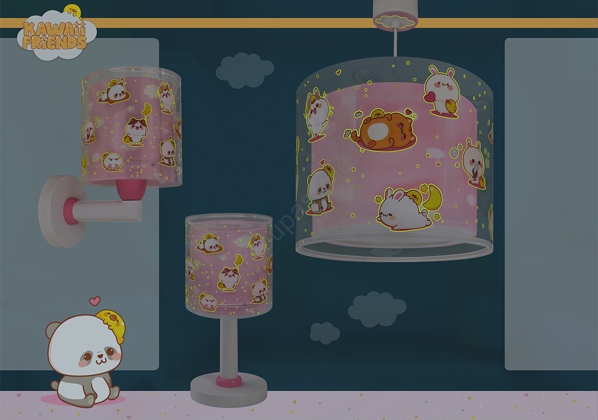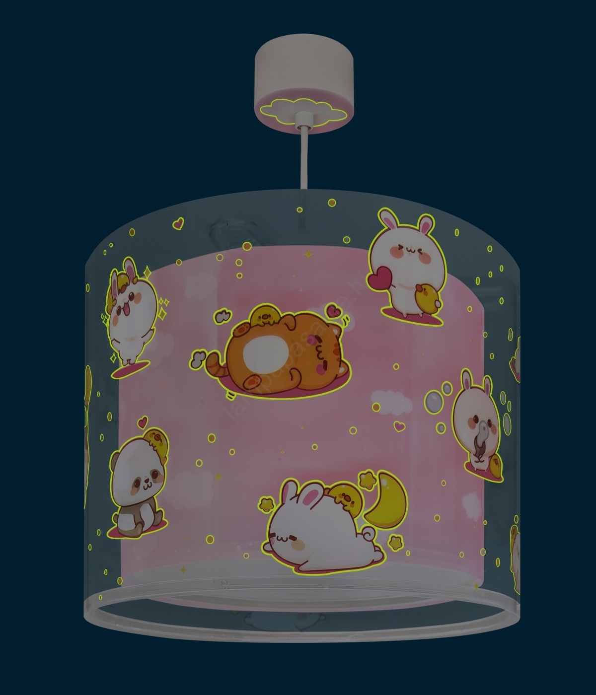 Dalber 41762S - Bērnu griestu lampa KAWAII FRIENDS 1xE27/15W/230V rozā | Lampupasaule