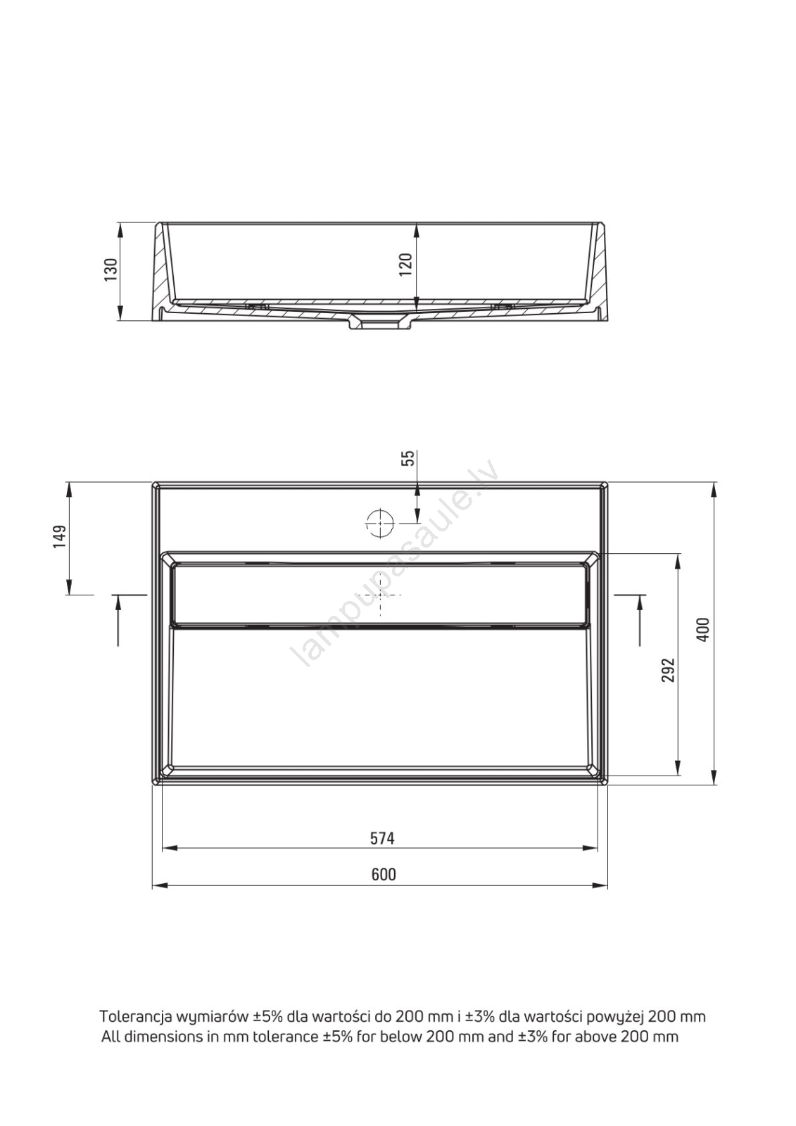 • Izlietne paredzēta uzstādīšanai uz virsmas, kas nodrošina elastīgu izvietošanu un kombinēšanu ar dažādu veidu vannas istabas virsmām.