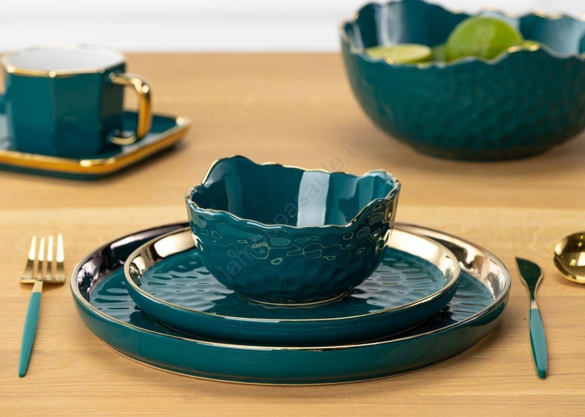• Izgatavota no keramikas zaļā un zelta krāsā.