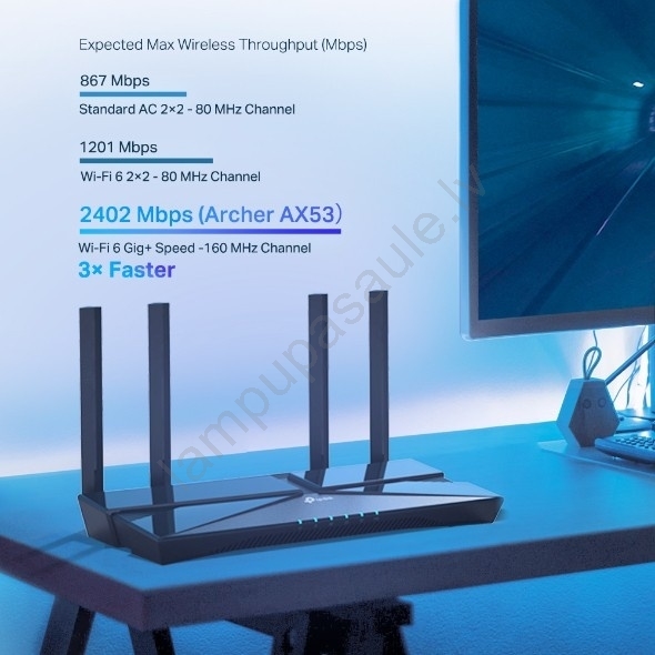 • Wi‑Fi 6 gigabitu ātrumi - 2 402 Mb/s 5 GHz joslā un 574 Mb/s 2,4 GHz joslā nodrošina vienmērīgāku straumēšanu un ātrāku lejupielādi.