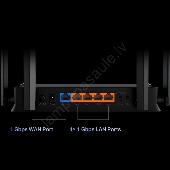 • Pilnībā gigabitveida porti - 1× 1 Gb/s WAN porti + 4× 1 Gb/s LAN porti nodrošina augstas ātrgaitas datu pārraidi.