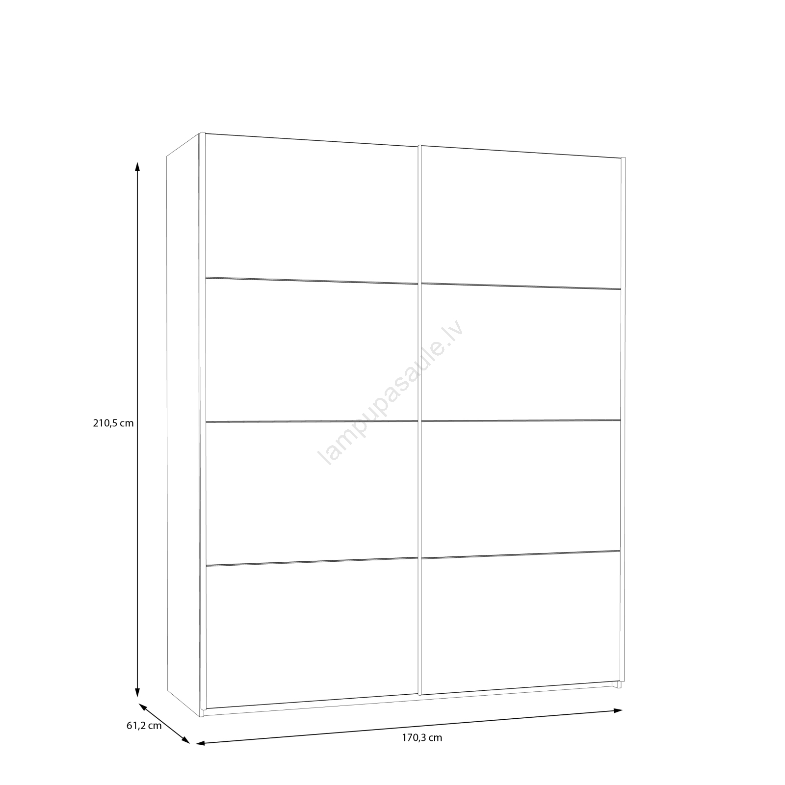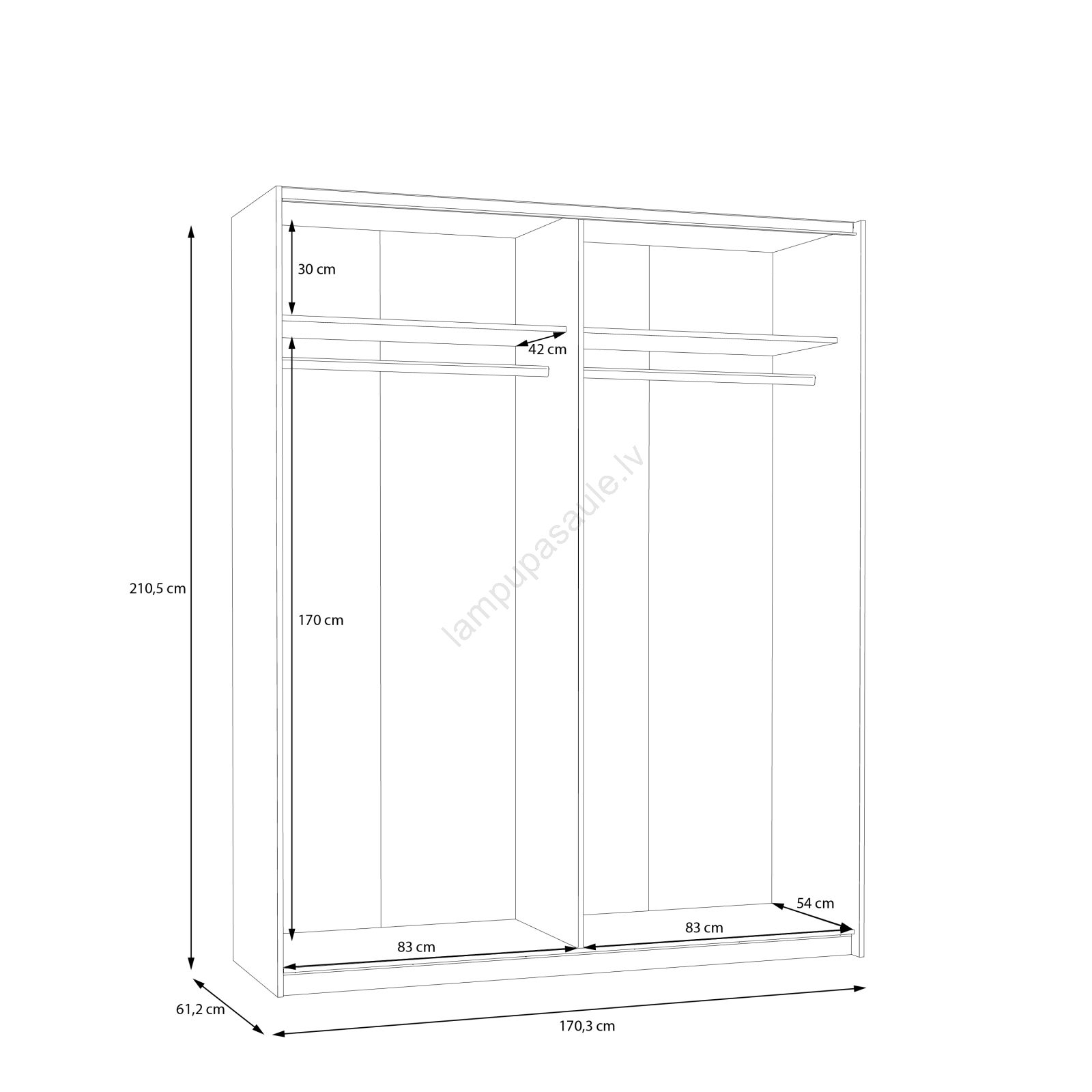 • Skapis aprīkots ar drēbju stangām, plauktiem un plašu uzglabāšanas vietu jūsu apģērbam, somām un sezonas lietām.