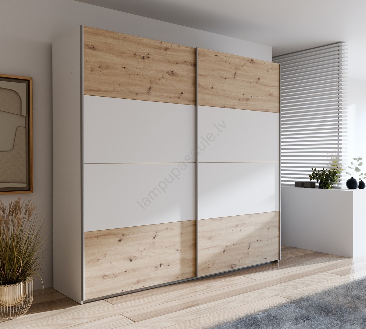Drēbju skapis KARO 220x210 cm balts/artisan ozols | Lampupasaule