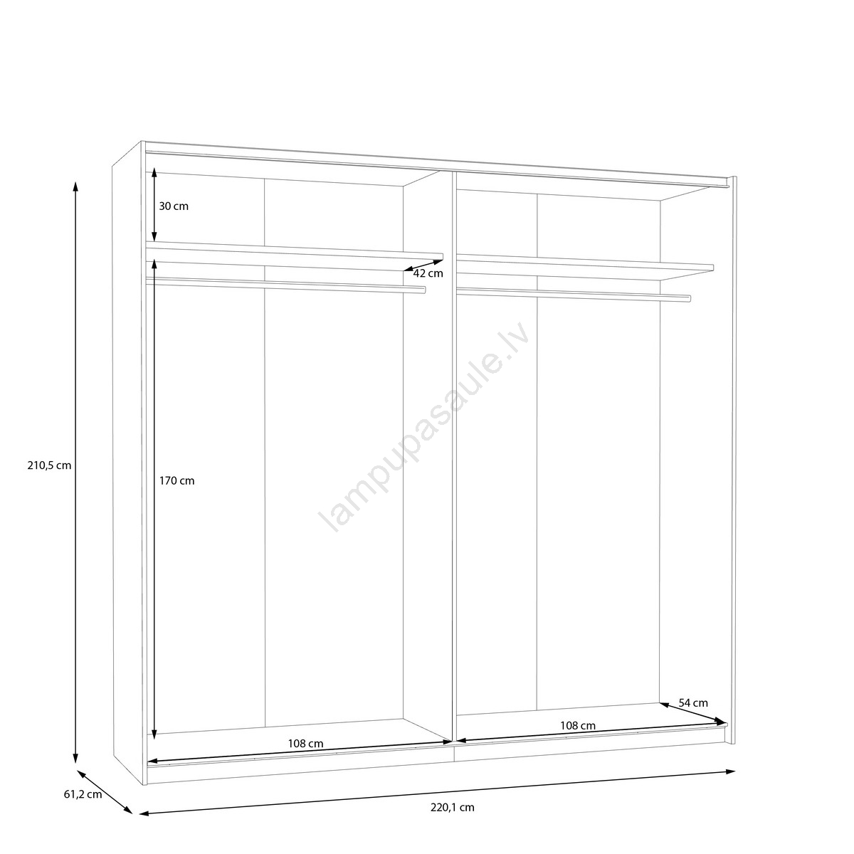 • Skapis aprīkots ar pakaramajām stangām, plauktiem un plašu uzglabāšanas vietu jūsu drēbēm, somām un sezonas mantām.