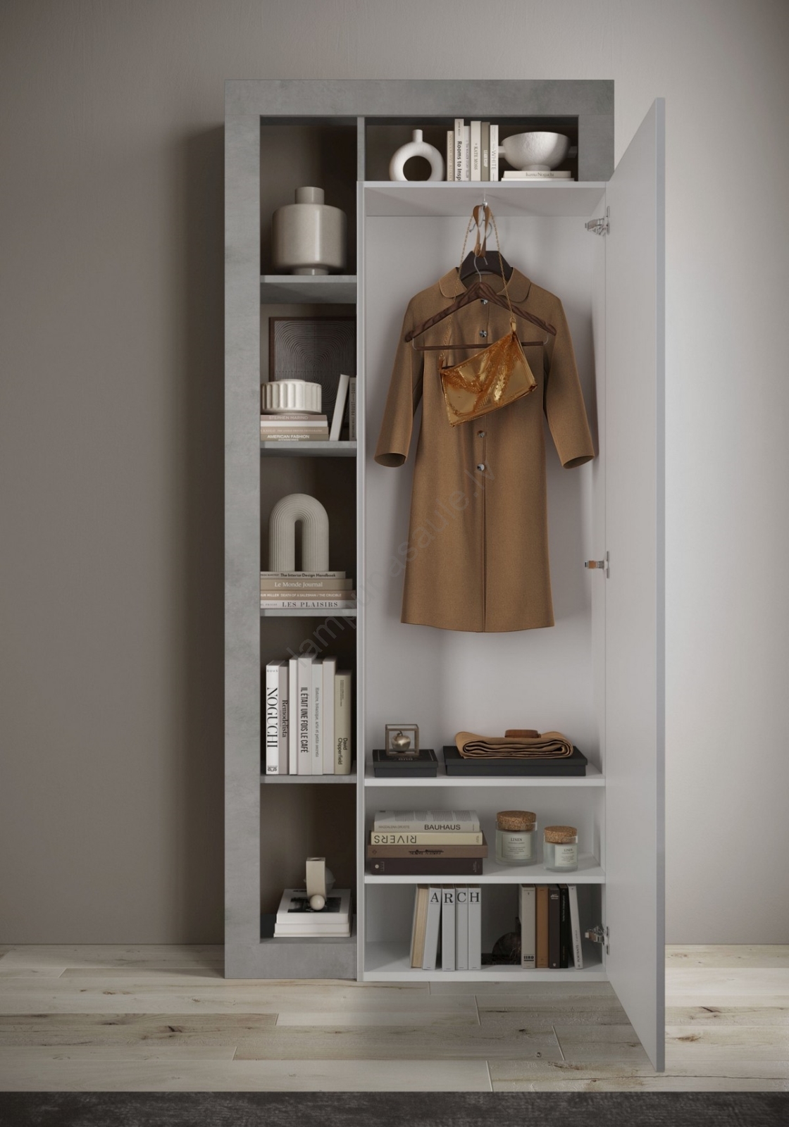 Drēbju skapis LENOR 91x209 cm, balts/pelēks (betona dekors) | Lampupasaule