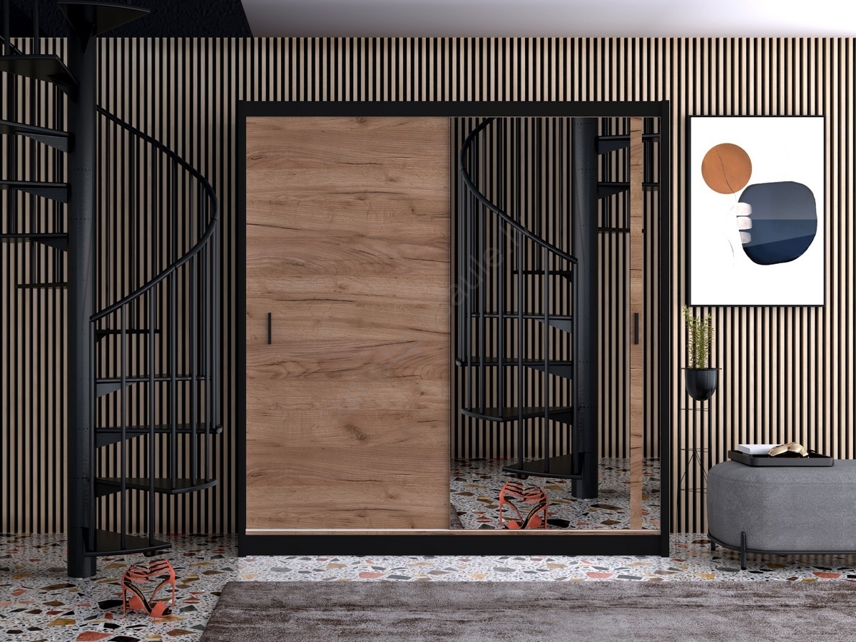 • Skapis ar spoguli MIRO 203x215 cm ozola craft/melns