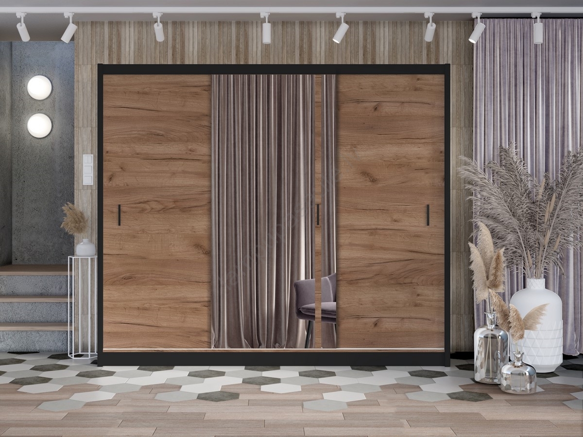 • Skapis ar spoguli MIRO 250x215 cm ozola craft/melns