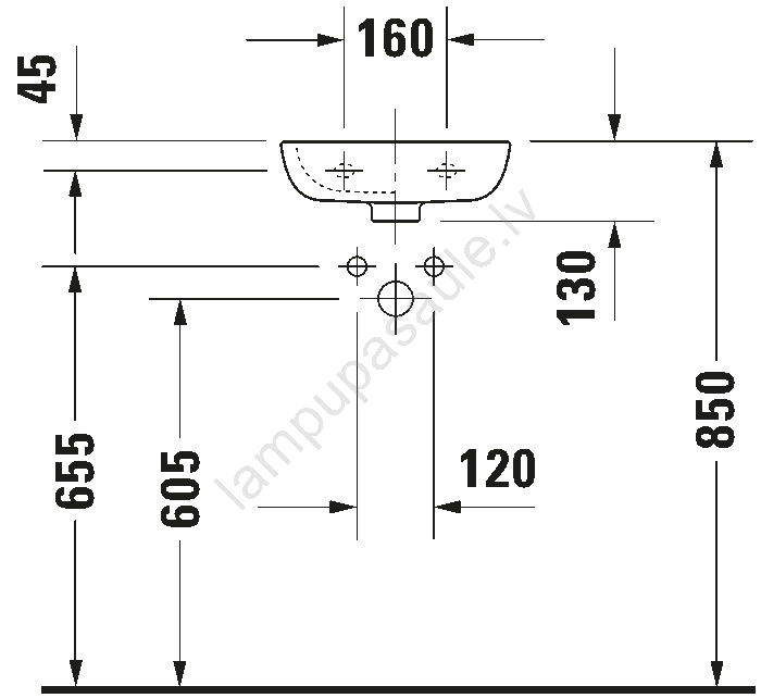 • Modelim ir viena iepriekš izurbta atvere izlietnes uzstādājamam jaucējkrānam, novietota pa labi.