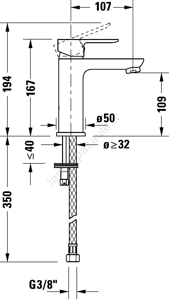 • Izlietnes sviras jaucējkrāns paredzēts montāžai uz izlietnes.
