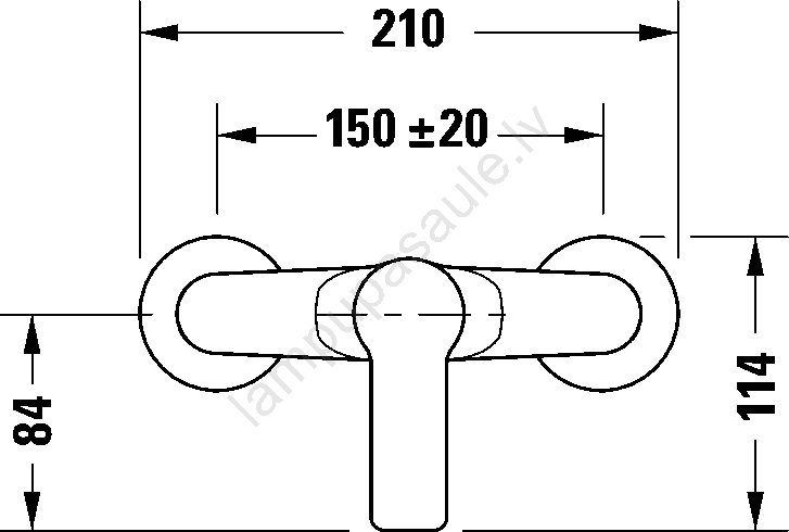 • Ūdens pieslēgumu attālums ir 150 mm ar toleranci ± 20 mm.