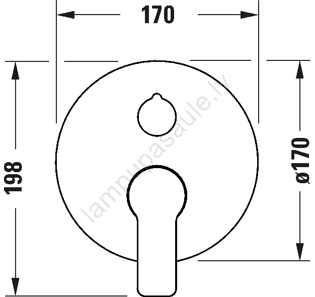 • Jaucējkrāna dizainu papildina apaļa pārklājuma rozete diametrā aptuveni 170 mm, kas uzsver tīru un mūsdienīgu izskatu.