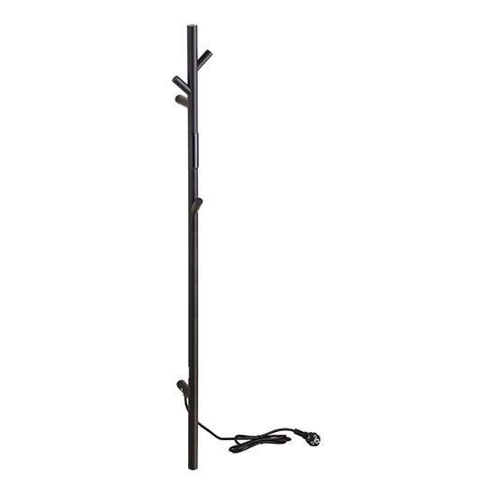 • Elektrisks dvieļu žāvētājs ar elegantu melnu apdari.