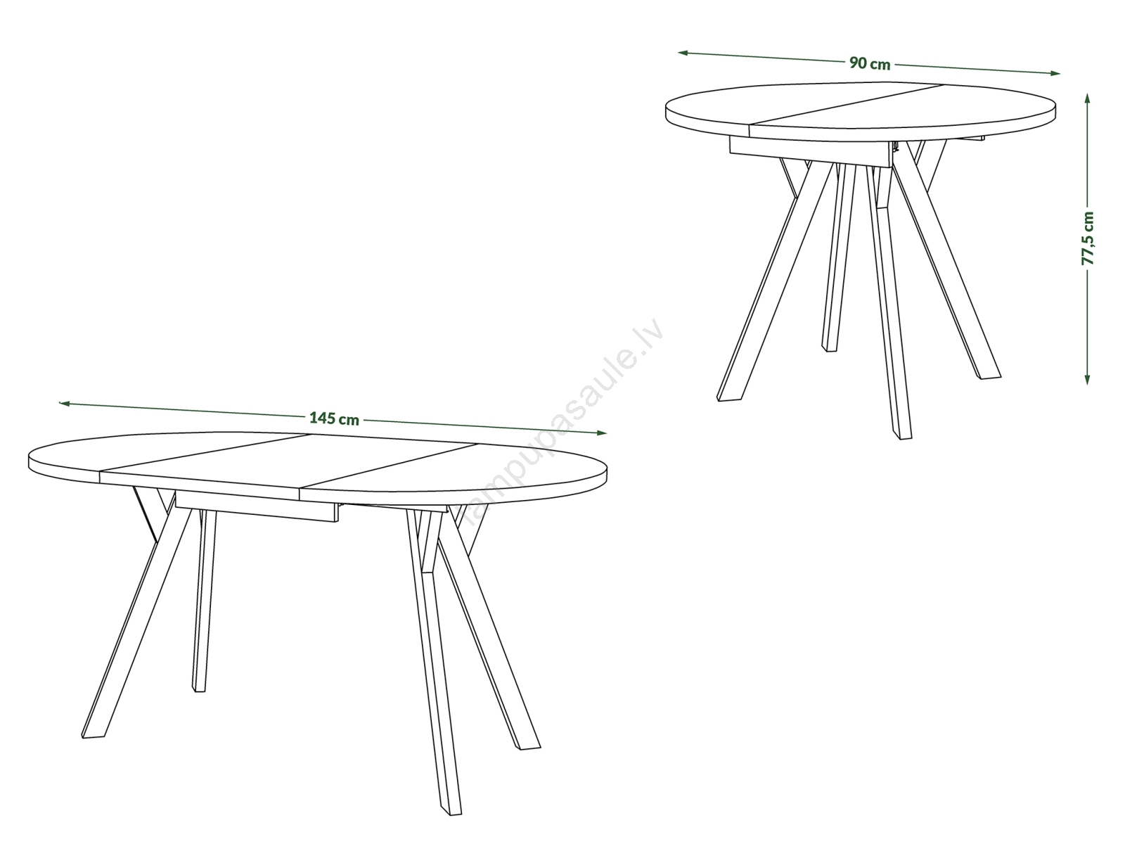 • Izmēri izklātam galdam: 145 x 90 cm.
