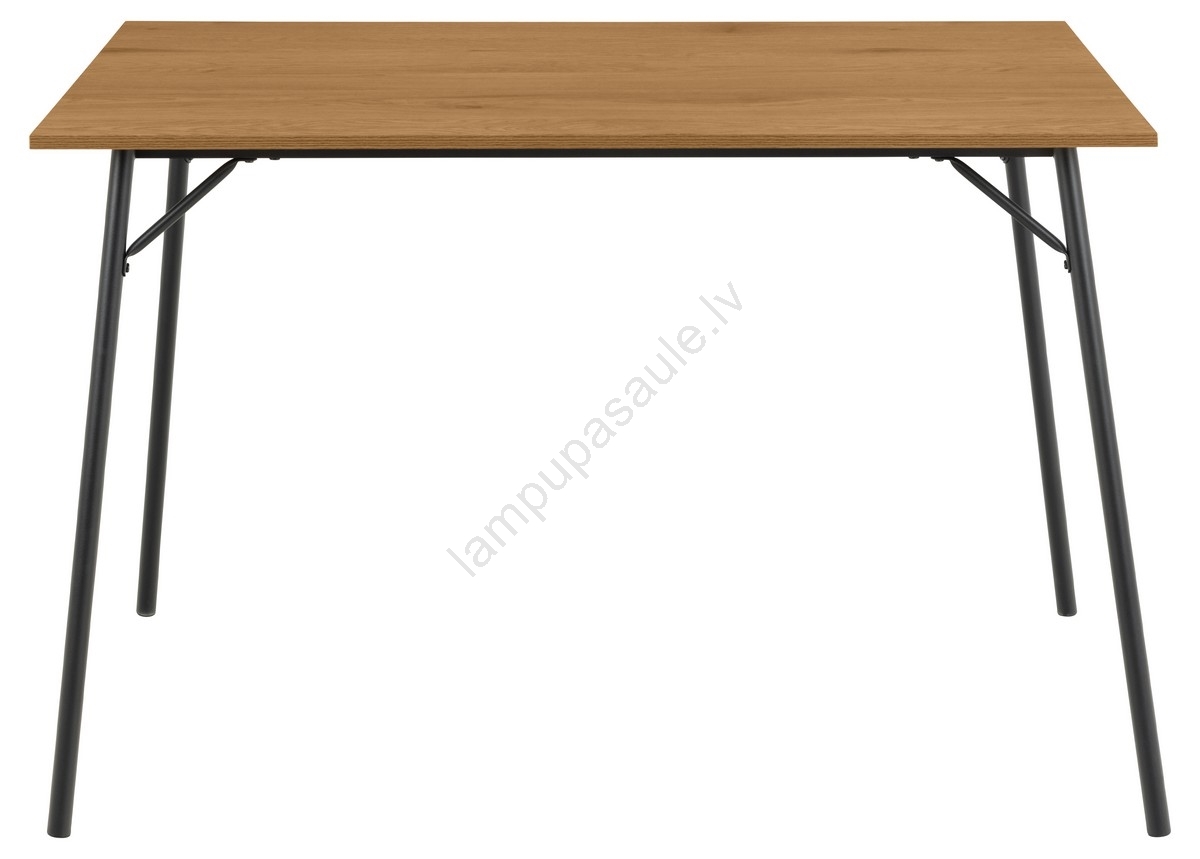 • Taisnstūra galdvirsmu ar ozola izskatu balsta slaidas melnas tērauda kājas.