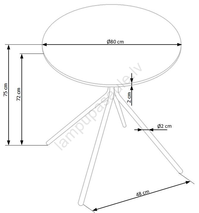 • Galda virsma ar diametru 80 cm nodrošina pietiekami daudz vietas ērtai ēšanai vai darbam.