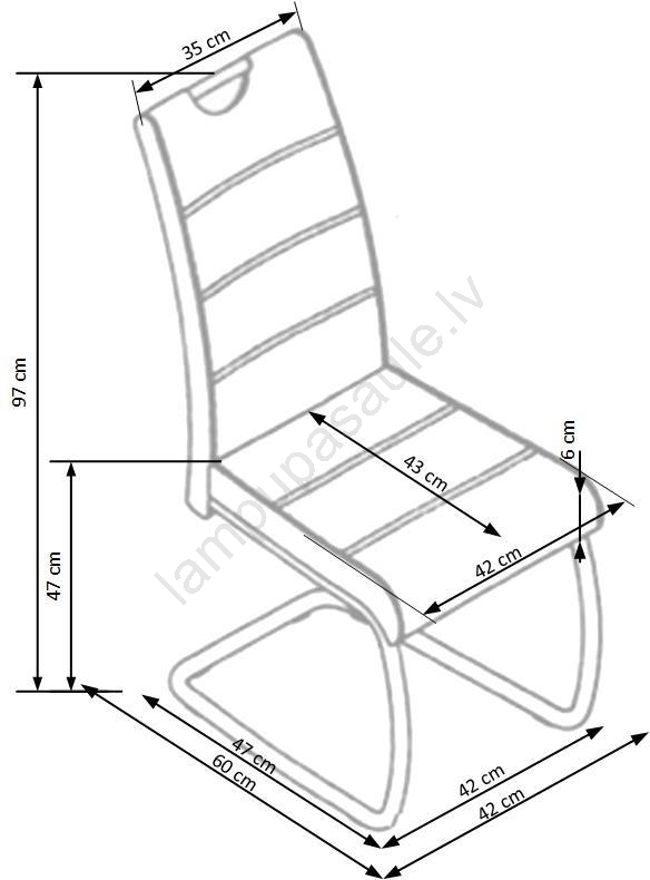• Kaste nr. 1: 68 x 42 x 31 cm (2,3 kg/1 krēsls).
