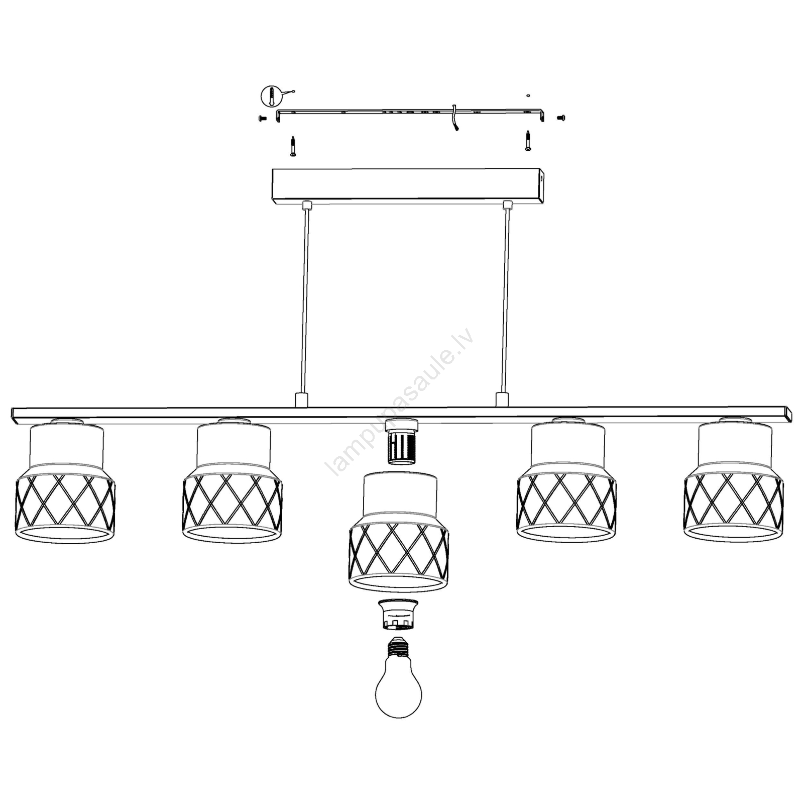 Eglo 39855 - Lustra uz auklas HILCOTT 5xE27/40W/230V | Lampupasaule