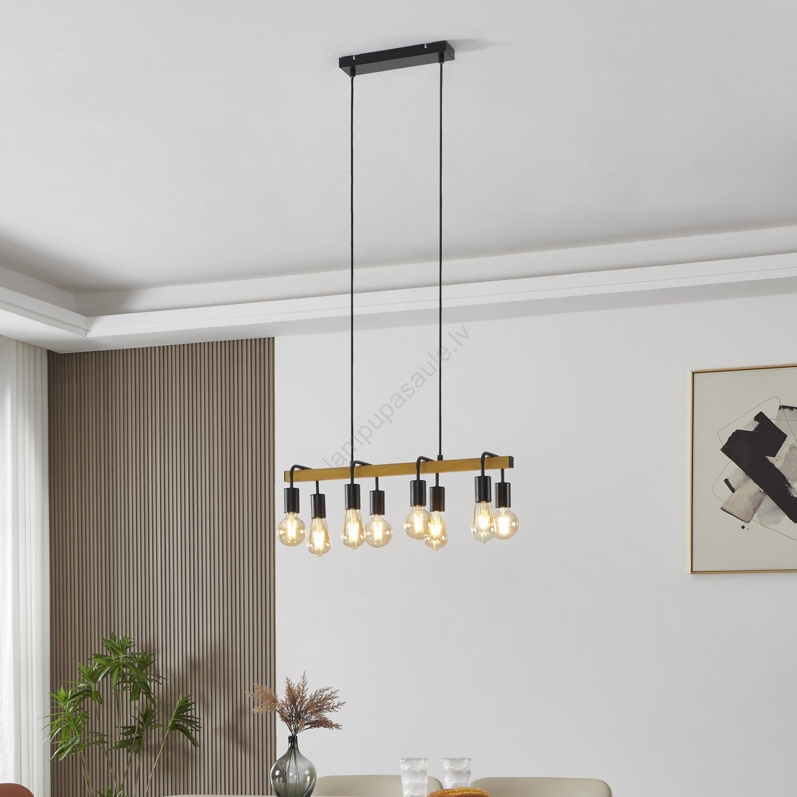 Eglo 43316 - Lustra uz kabeļa ERRIBERA 8xE27/40W/230V ozols/melns izceļas ar jauku un funkcionālu dizainu.  Spuldze ar E27 cokolu irpiemērota lampai. Šeit, varat iegādāties citas spuldzes par izdevīgām cenām. Tā būs interesants jūsu mājas papildinājums.