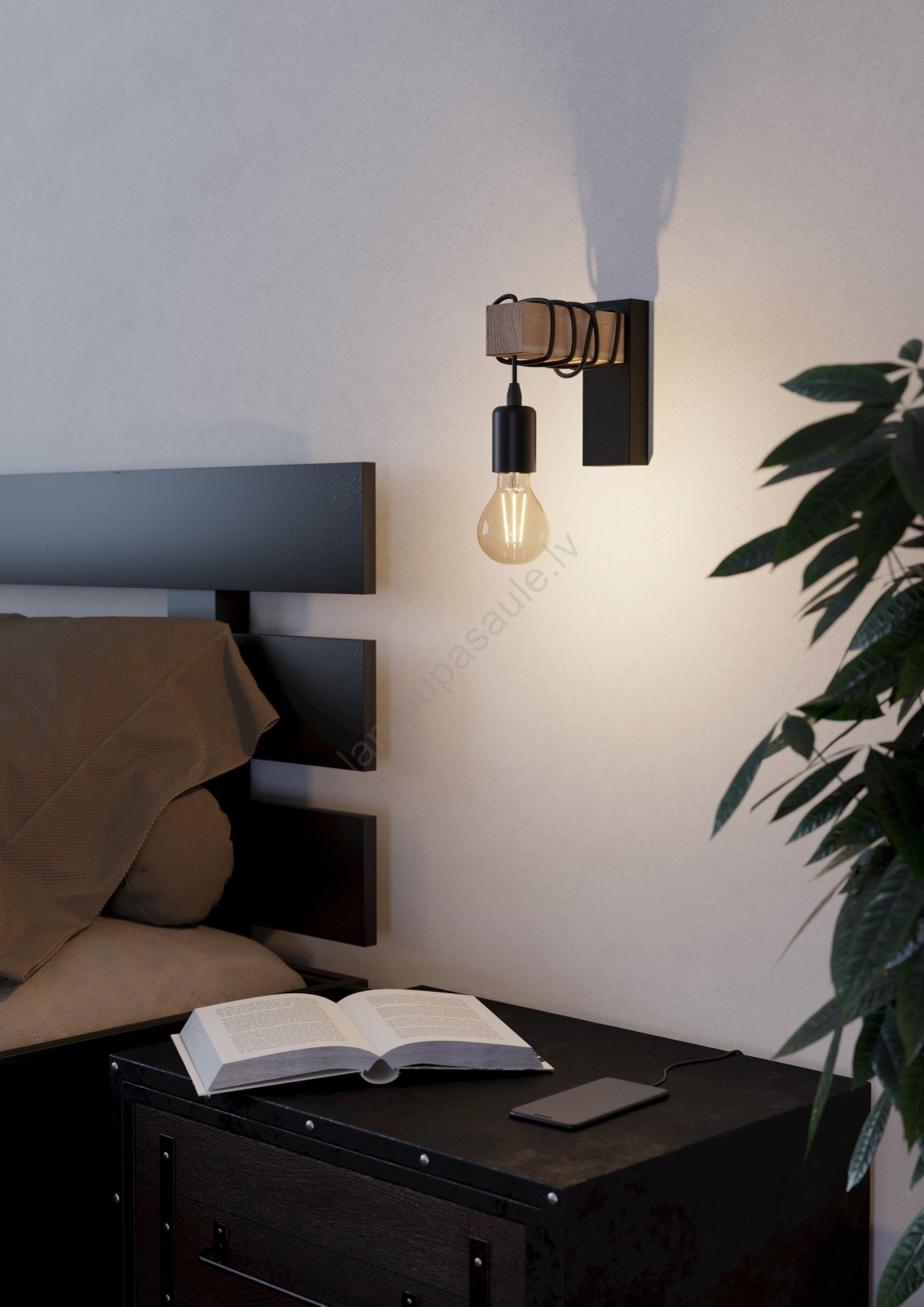 Dzīvojamā istaba un guļamistaba, Eglo, Iekšējais apgaismojums, Koka sienas lampas, Lampas, Sienas lampas, Sienas lampas, Telpas, Zīmoli