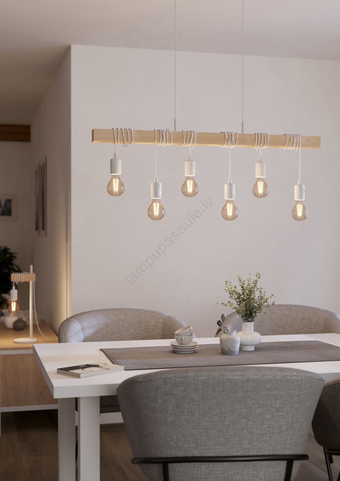 Eglo - Pakaramā lustra uz troses TOWNSHEND 6xE27/60W/230V izceļas ar jauku un funkcionālu dizainu.  Spuldze ar E27 cokolu irpiemērota lampai. Šeit, varat iegādāties citas spuldzes par izdevīgām cenām. Tā būs interesants jūsu mājas papildinājums.