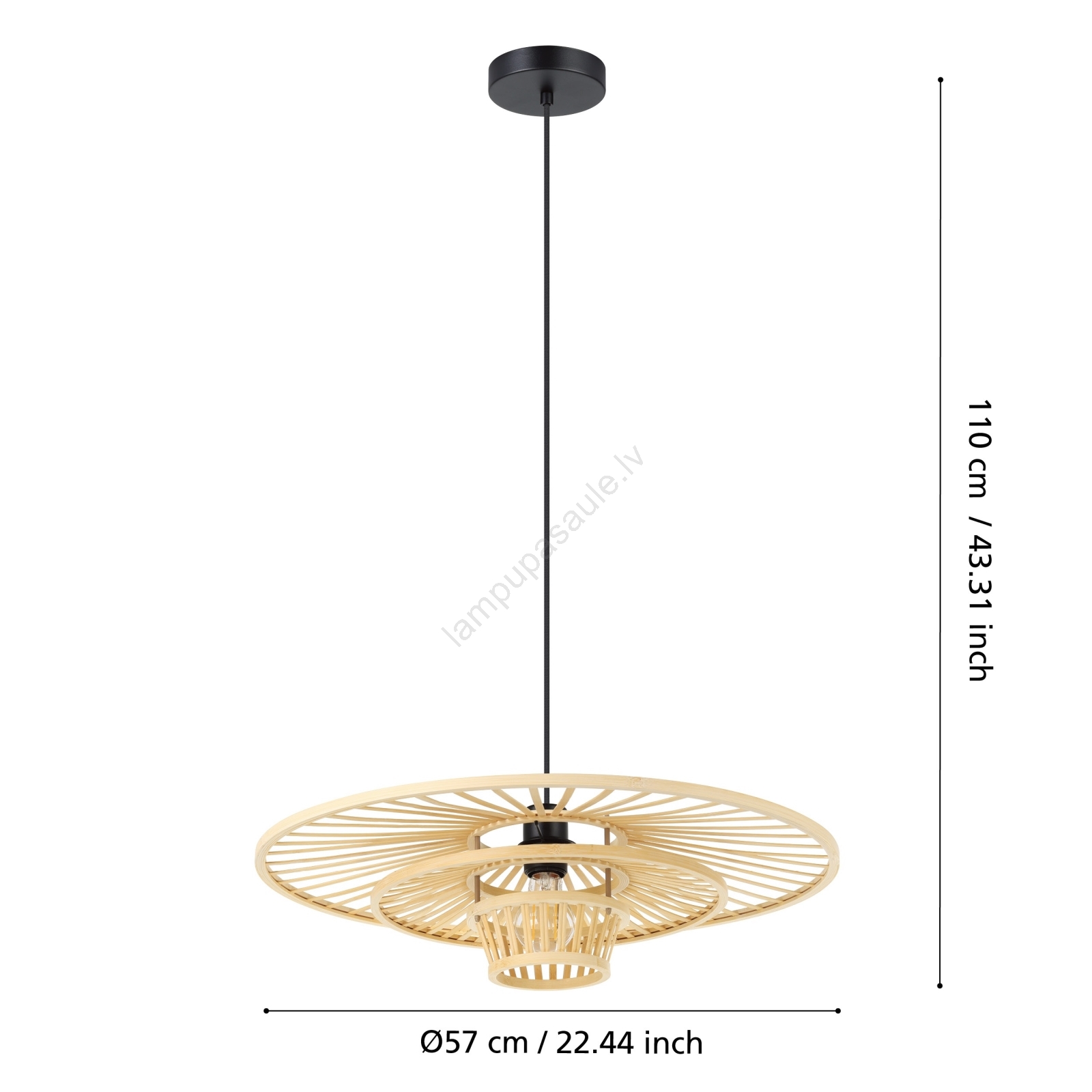 Eglo - piekaramā lampa uz vada 1xE27/40W/230V bambusa izceļas ar jauku un funkcionālu dizainu.  Spuldze ar E27 cokolu irpiemērota lampai. Šeit, varat iegādāties citas spuldzes par izdevīgām cenām. Tā būs interesants jūsu mājas papildinājums.