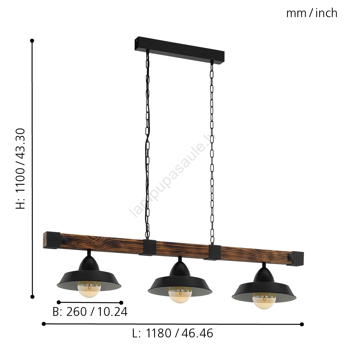Eglo - lustra ar ķēdi 3xE27/60W/230V izceļas ar jauku un funkcionālu dizainu.  Spuldze ar E27 cokolu irpiemērota lampai. Šeit, varat iegādāties citas spuldzes par izdevīgām cenām. Tā būs interesants jūsu mājas papildinājums.