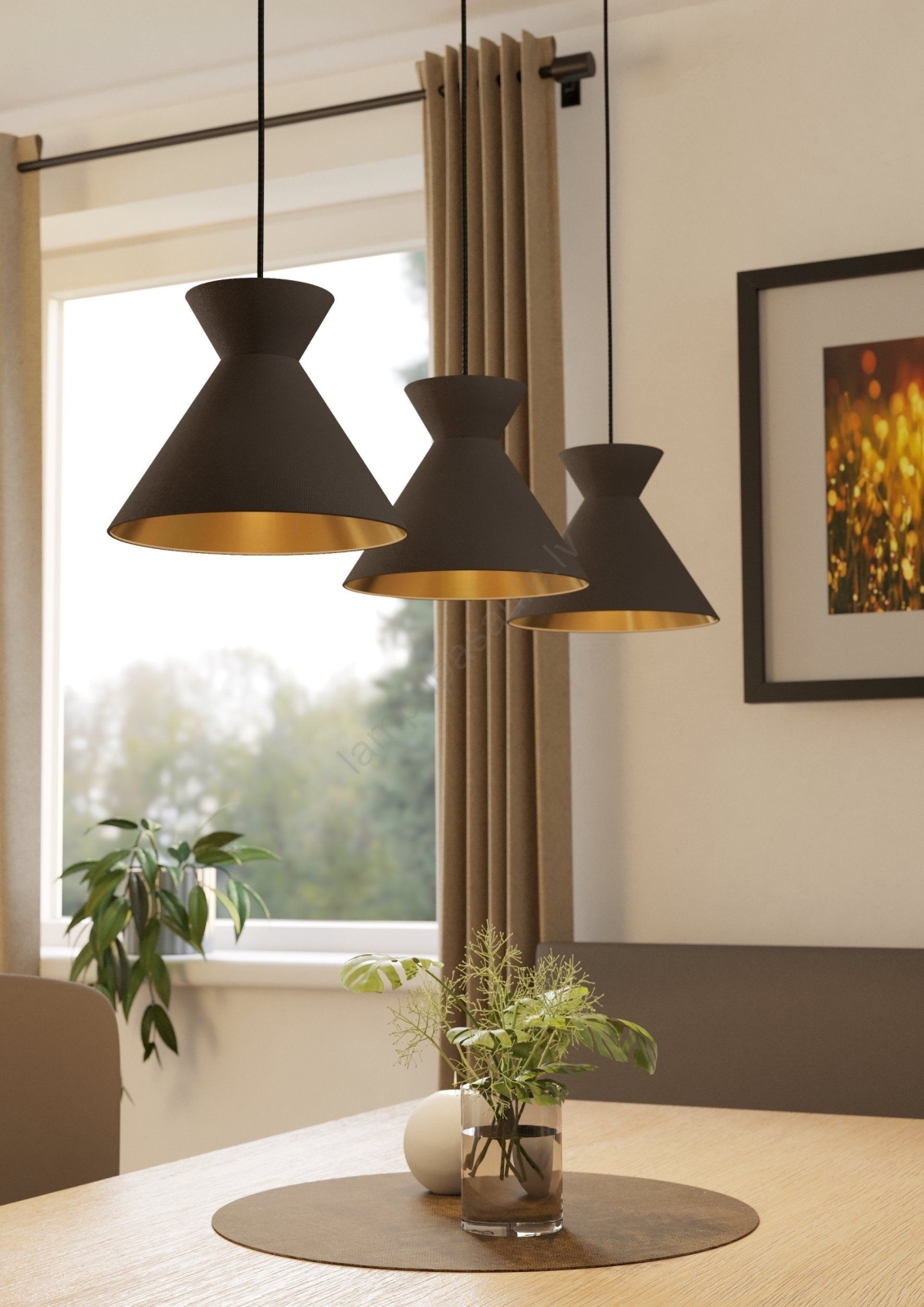 Eglo 900348 - Pakaramā lustra NASTASIA uz troses 3xE27/40W/230V izceļas ar jauku un funkcionālu dizainu.  Spuldze ar E27 cokolu irpiemērota lampai. Šeit, varat iegādāties citas spuldzes par izdevīgām cenām. Tā būs interesants jūsu mājas papildinājums.