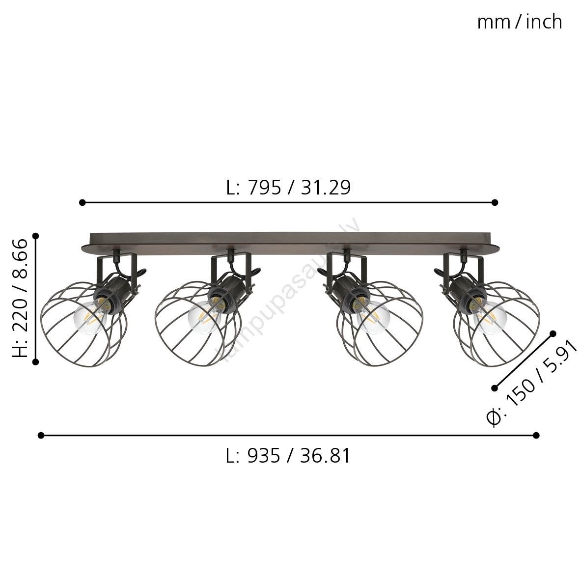 Eglo 98137 - SAMBATELLO virziena gaismeklis 4xE27/40W/230V | Lampupasaule