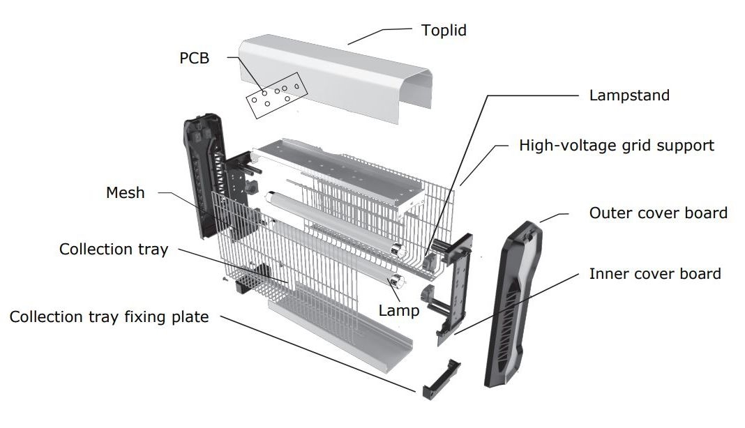 • Izņemams un mazgājams trauks mirušo mušu savākšanai.