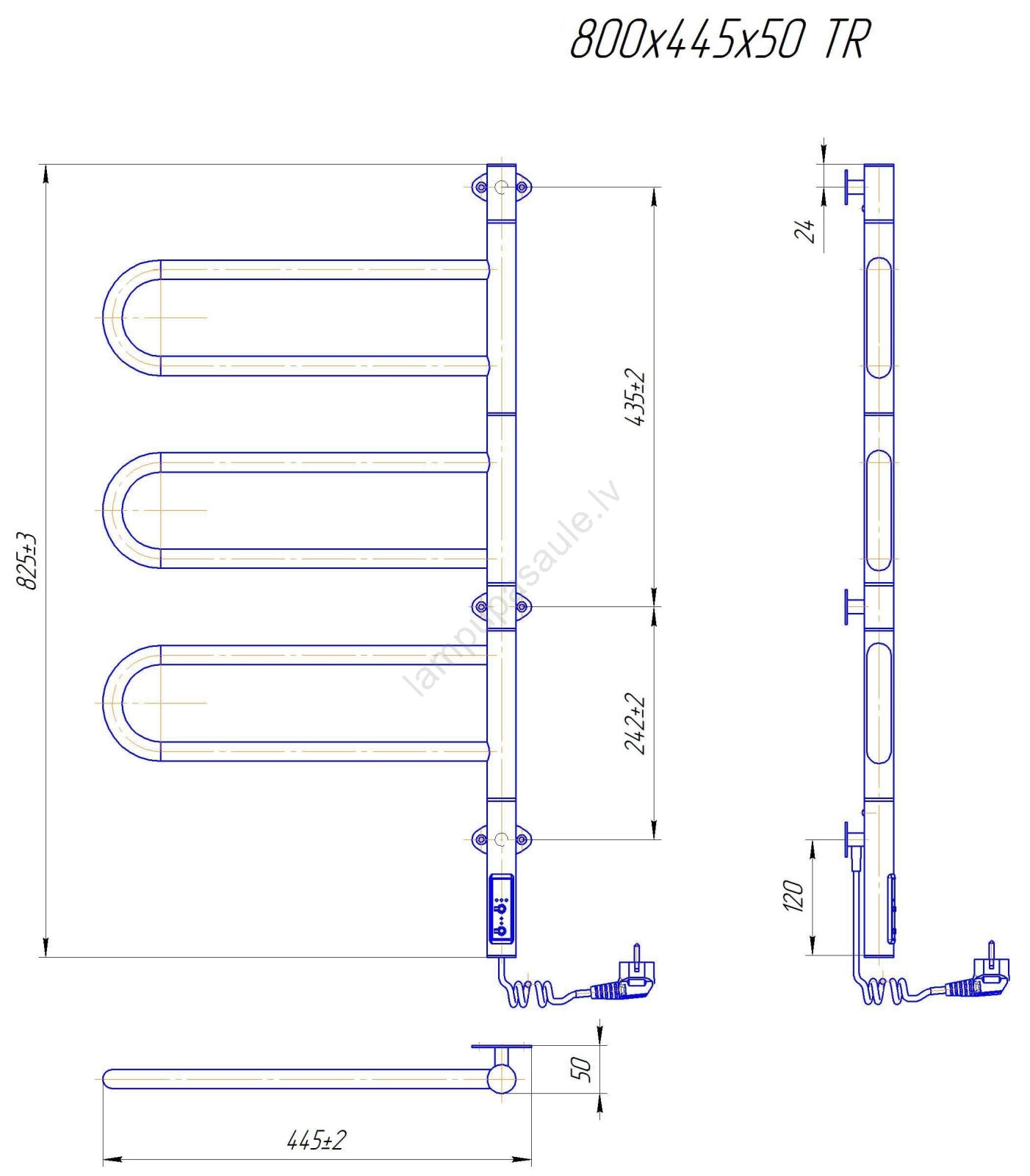 • Elektrisks dvieļu žāvētājs vannasistabai ar termostatu.