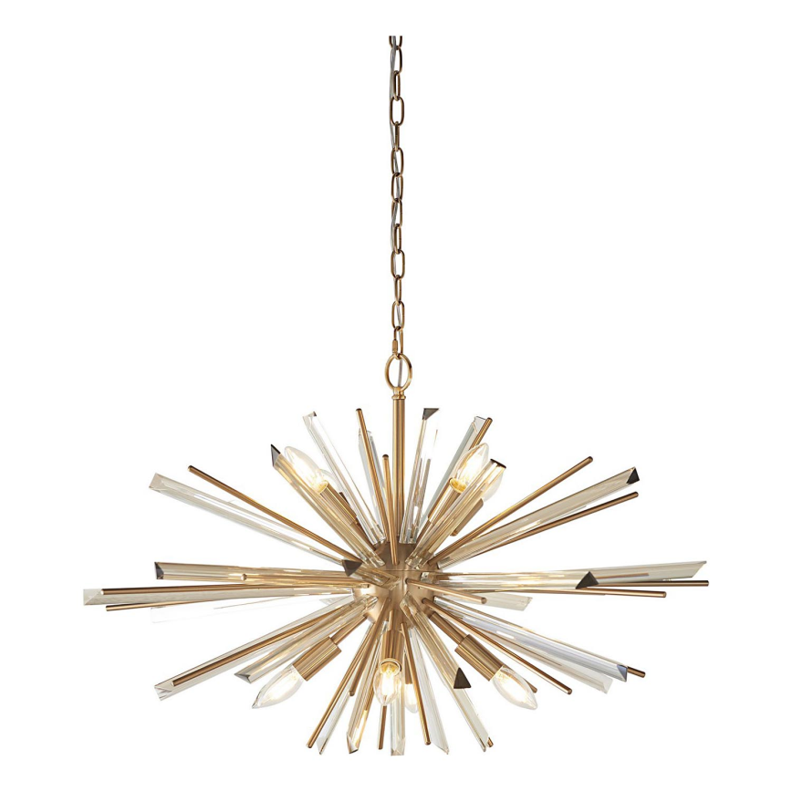 Endon 81935 - zelta lustra uz ķēdes 8xE14/40W/230V izceļas ar jauku un funkcionālu dizainu.  Spuldze ar E14 cokolu irpiemērota lampai. Šeit, varat iegādāties citas spuldzes par izdevīgām cenām. Tā būs interesants jūsu mājas papildinājums.