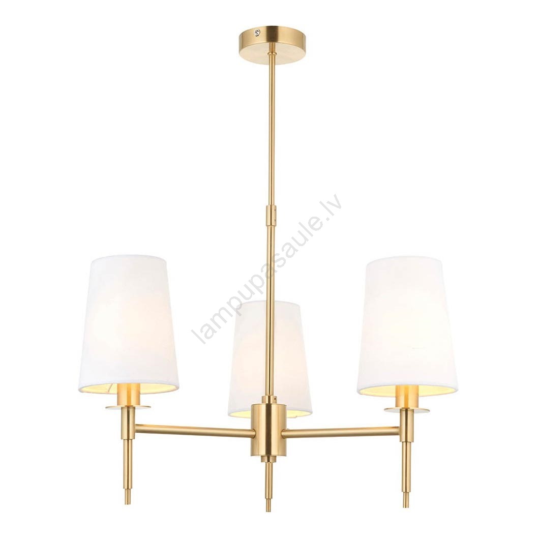 Endon 99456 - Lustra uz stieņa 3xE14/6W/230V zelta/balta izceļas ar jauku un funkcionālu dizainu.  Spuldze ar E14 cokolu irpiemērota lampai. Šeit, varat iegādāties citas spuldzes par izdevīgām cenām. Tā būs interesants jūsu mājas papildinājums.