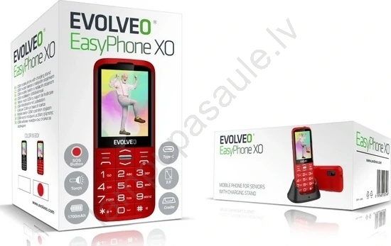 • Evolveo - EasyPhone XO, sarkans mobilais tālrunis senioriem