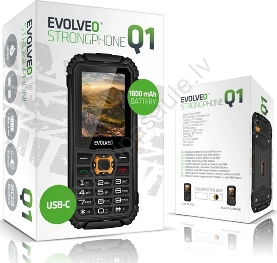 Evolveo - StrongPhone Q1, ūdensizturīgs Dual SIM telefons melns/oranžs