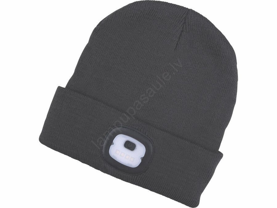Extol - cepure ar iebūvētu galvas lukturi un USB uzlādi, 250 mAh, tumši pelēka, izm. UNI