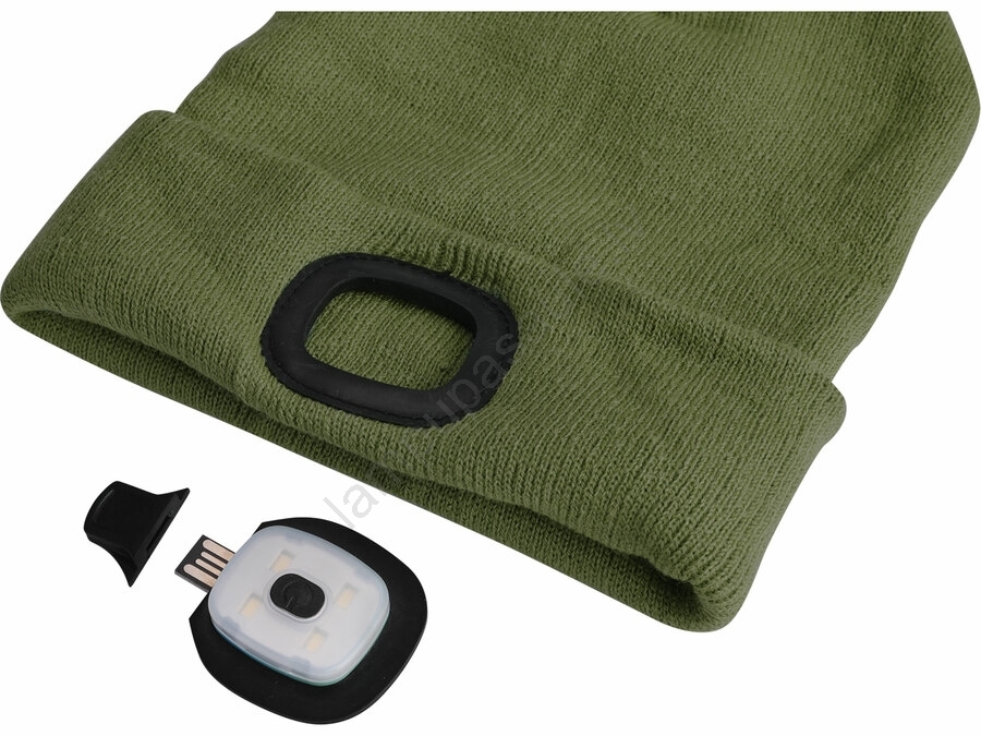 Extol - cepure ar galvas lukturi un USB uzlādi 300 mAh, zaļa, izm. UNI