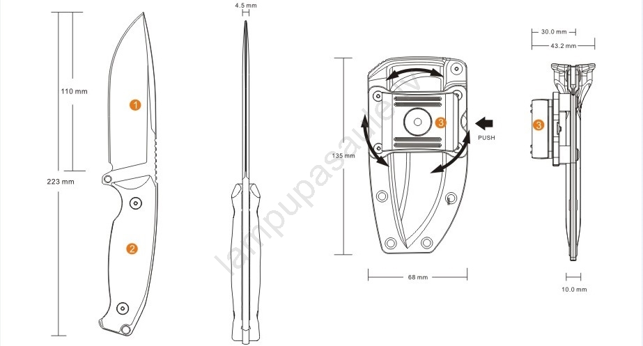 • Pateicoties strukturētai G10 roktura virsmai, nazis lieliski pieguļ rokā.