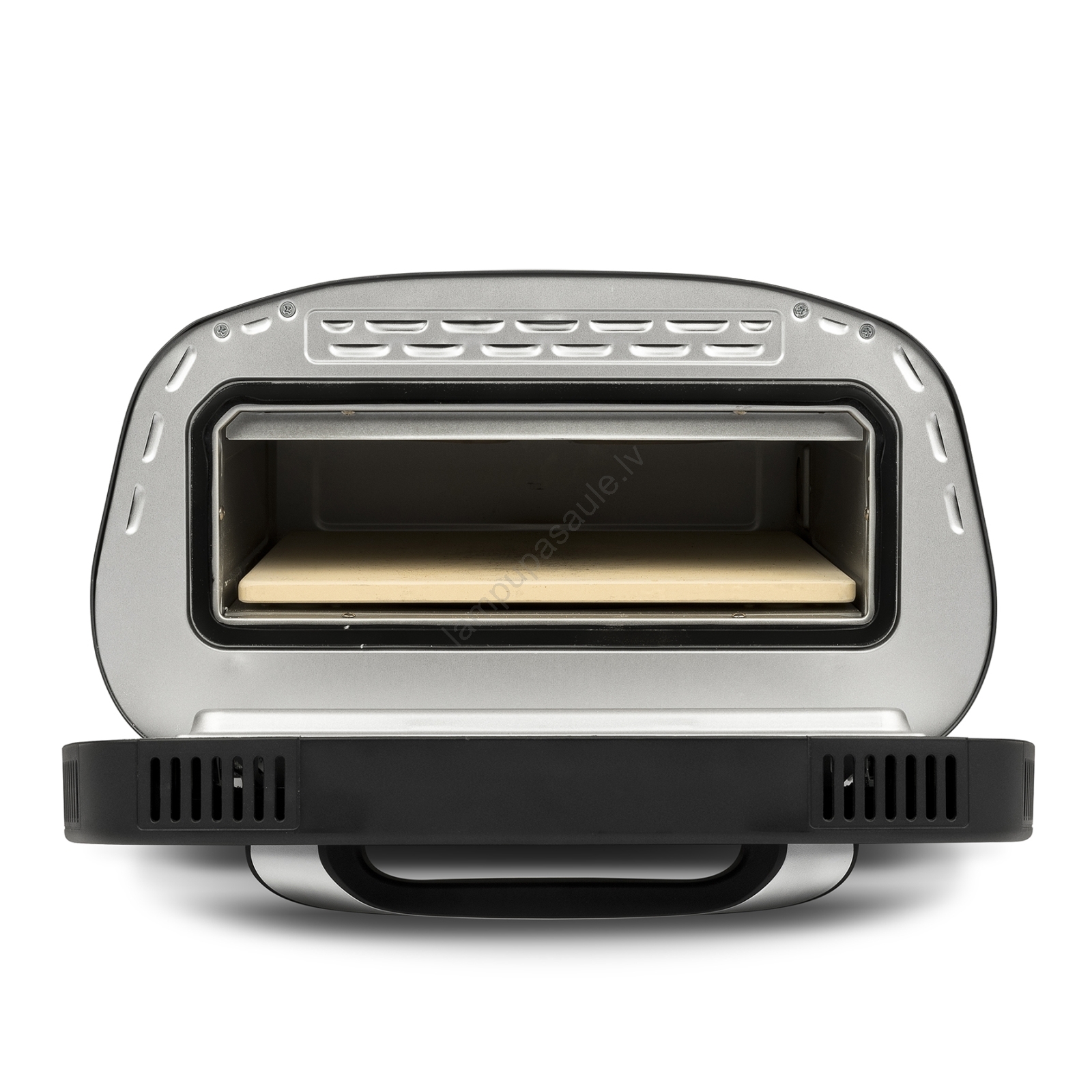 • Pilns piederumu komplekts: cepamais akmens (32x32 cm), emaljēta cepamā panna, nerūsējošā tērauda grils, alumīnija lāpsta un picas griezējs.