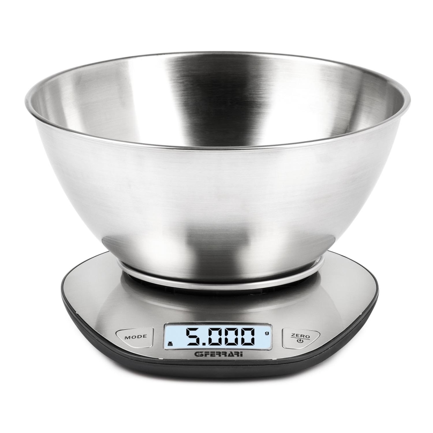 G3Ferrari G2006200 - digitālie virtuves svari ar bļodu, 2x AAA baterijas, no nerūsējošā tērauda