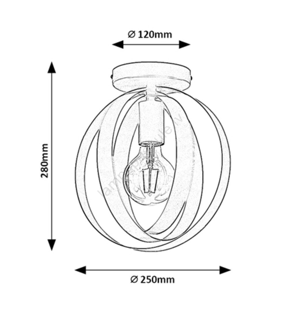 Griestu lampa Cortado, kas atspoguļo industriālo stilu, būs lieliska izvēle jūsu modernajai viesistabai, ēdamistabai vai guļamistabai. Trīs melnas dzelzs gredzeni, kas savstarpēji pagriezti, veido bumbu ap brīvi novietotu gaismas avotu. Lampa tiek piestiprināta pie griestiem ar apaļu dekoratīvu pamatni un var darboties ar vienu gaismas avotu līdz 40W jaudai. Pamatnes tips ir E27. Griestu lampai Cortado varat izvēlēties gaismas avotu ar dabisku vai siltu baltu gaismu. Ja to novietosiet guļamistabā, iesakām izmantot spuldzi ar siltu baltu gaismu, kas palīdzēs radīt mājīgu un intīmu atmosfēru. Lampas Cortado izmēri ir šādi: diametrs 250 mm, attālums no griestiem 280 mm, uzstādīšanas diametrs 120 mm. Šis modelis tiek piegādāts bez gaismas avota.