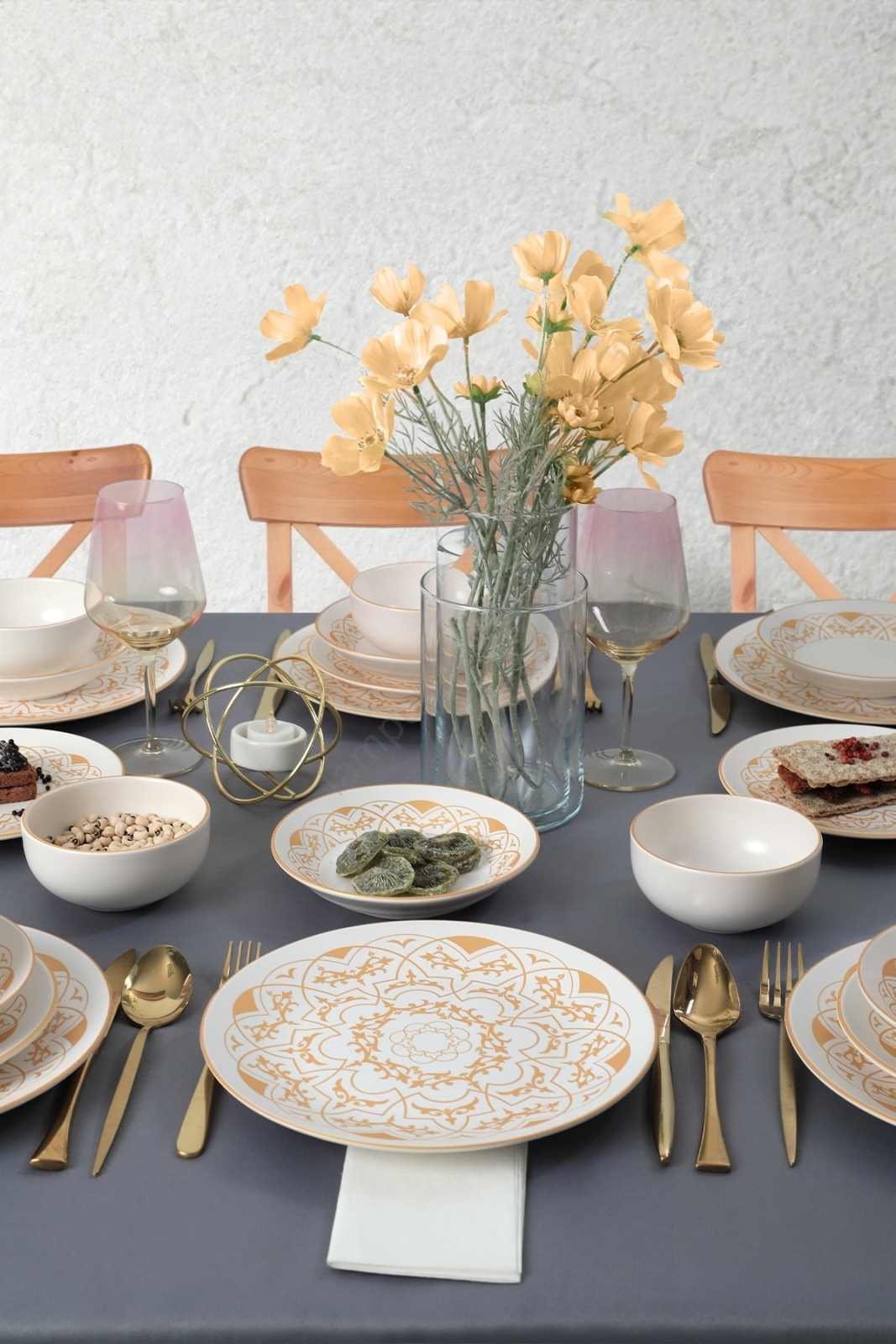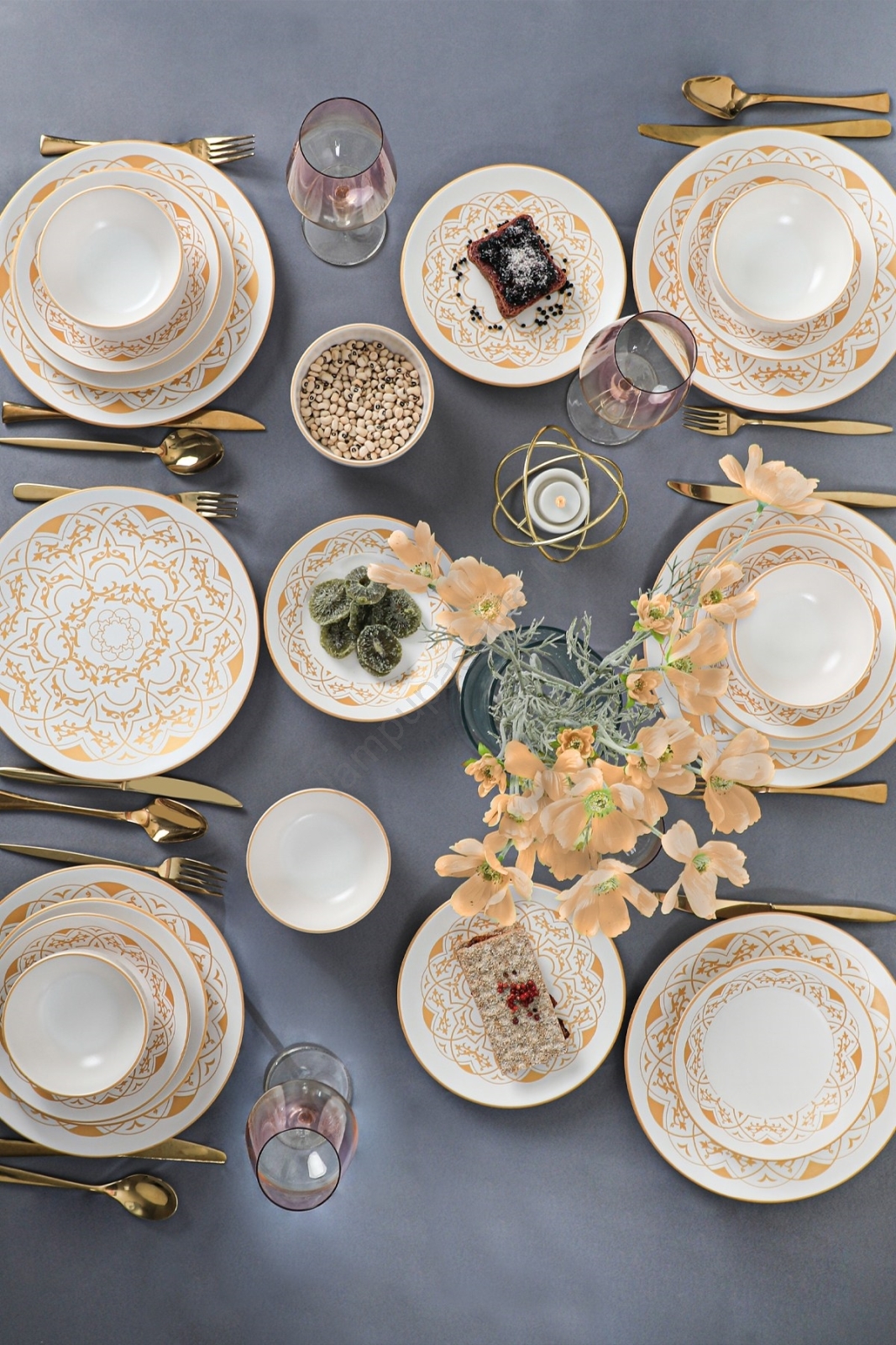 Galda servīze 24 gab. balta/zelta/keramika | Lampupasaule