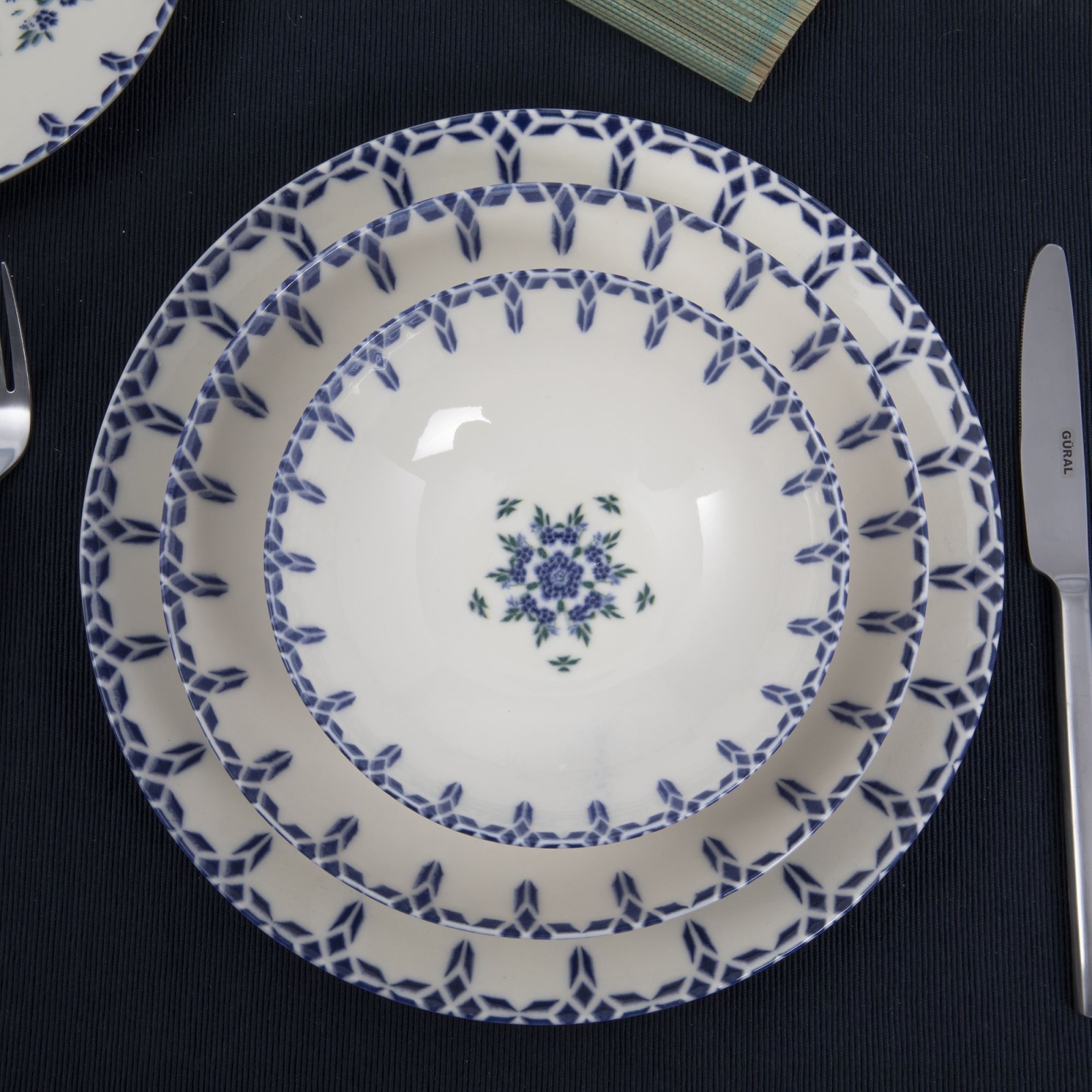 Galda servīze 24 gab., balta/zila, porcelāns