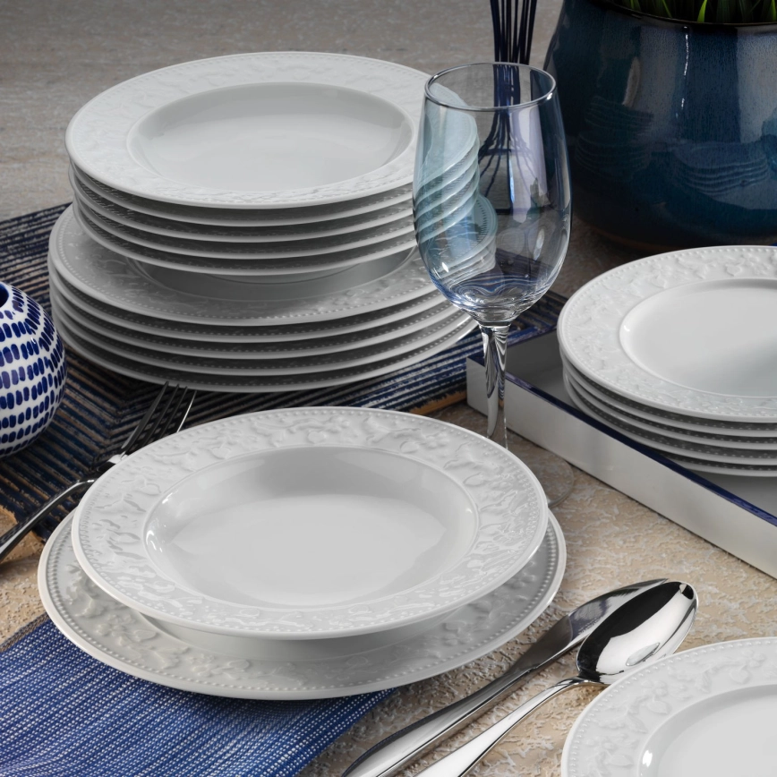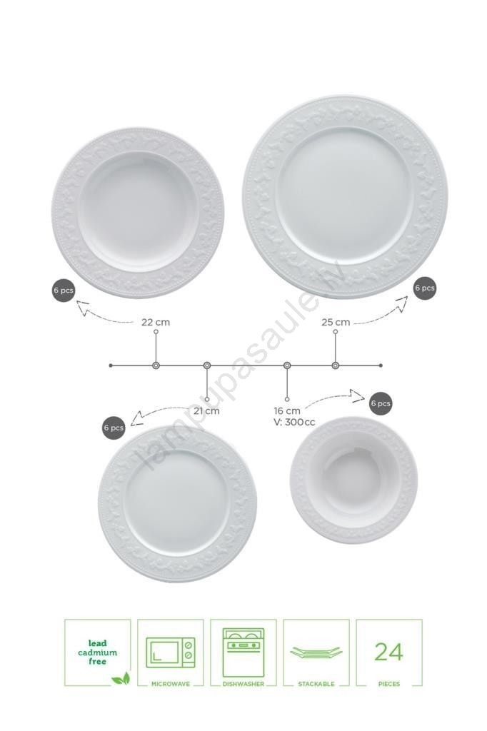 Galda trauku komplekts, 24 gab., balts/porcelāns | Lampupasaule