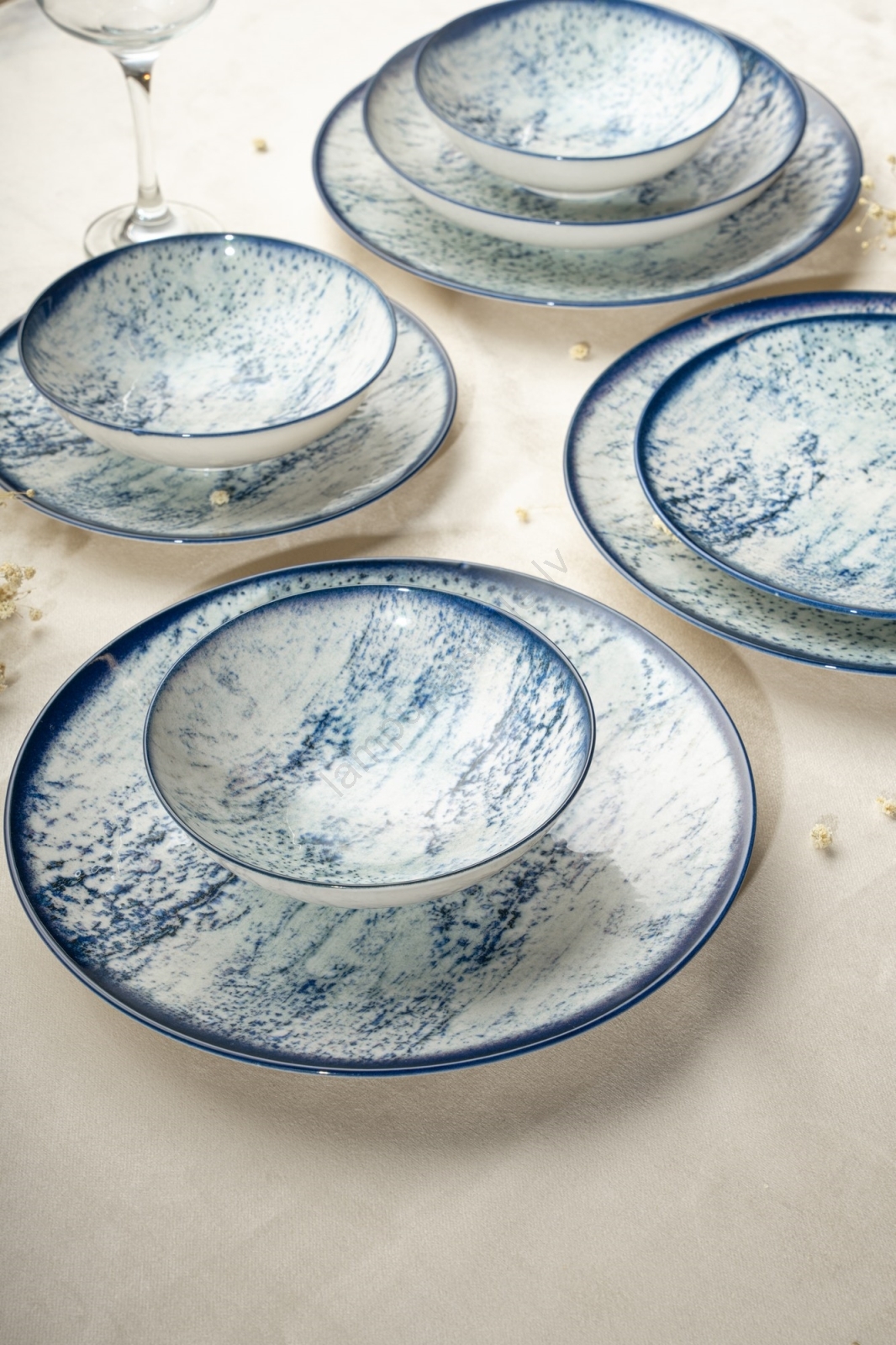 Galda trauku komplekts, 24 gab., zils/porcelāns