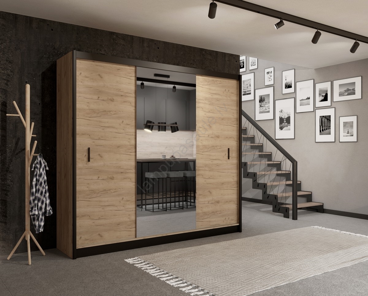 Skapis ar spoguli MIRO 250x215 cm, ozola krāsa/ melns | Lampupasaule