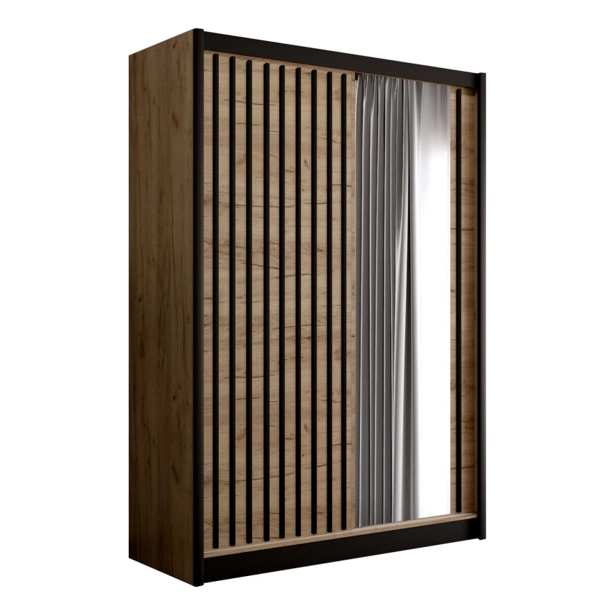 Drēbju skapis ar spoguli SANTINO 150x215 cm ozols craft/melns | Lampupasaule