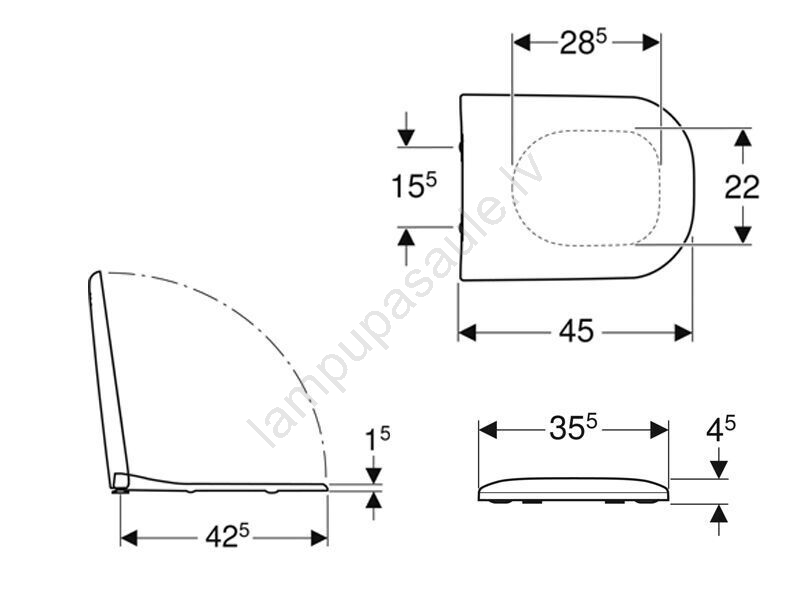 • Stiprinājums paredzēts 15,5 cm attālumam un pārklāj tualetes vāku.