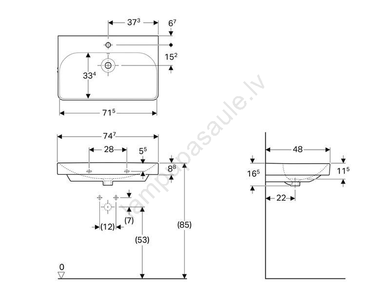 Geberit 500.249.01.1 - Sienas piestiprināma izlietne Smyle Square 75x48 cm keramika/balta