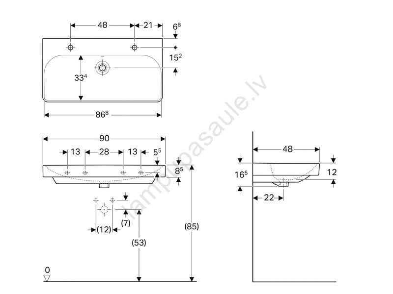 Geberit 500.252.01.1 - Sienas piestiprināma dubultā izlietne Smyle Square 90x48 cm keramika/balta |